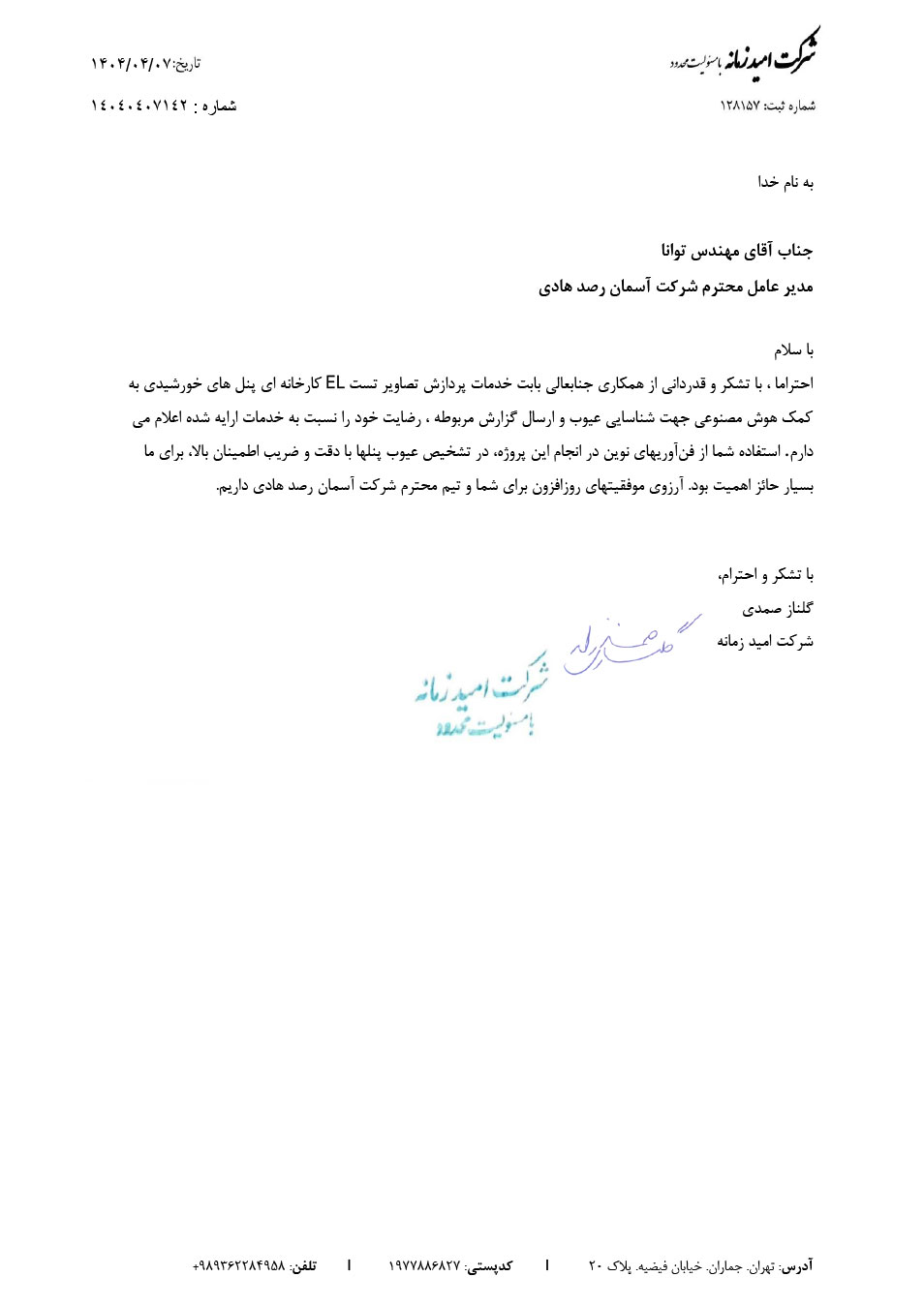 با استفاده از هوش مصنوعی در مبدا پیش از حمل جهت جلوگیری از تحویل پنل های معیوب