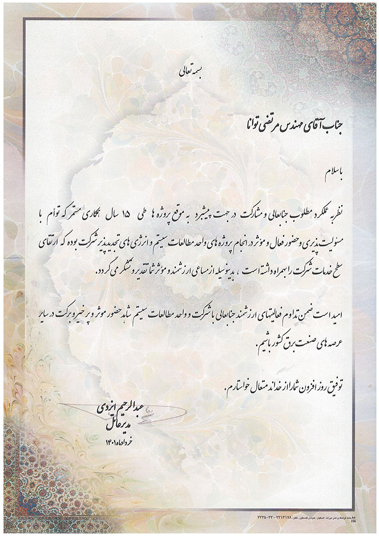 - سابقه فنی و مهندسی قابل توجه در طراحی، مشاوره پروژههای نیروگاهی و انرژی خورشیدی