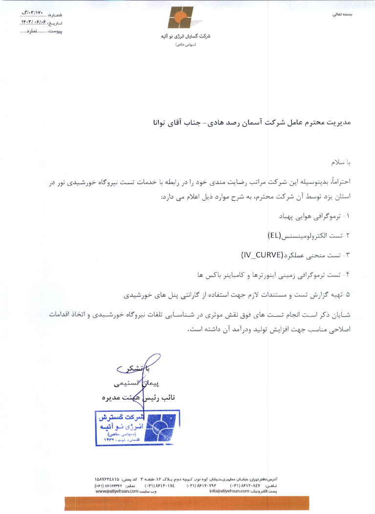 رضایت و تقدیر مشتریان ما